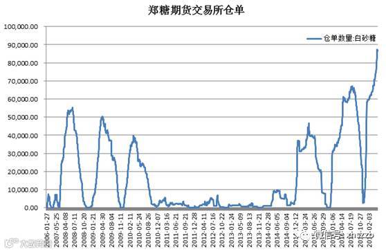 还值得注意的是,截至2017年5月9日交易所仓单达86383张,创历史新高,并且依旧持续上升,说明现货做空意愿很强,或者说现货商套保非常积极,利空糖价。