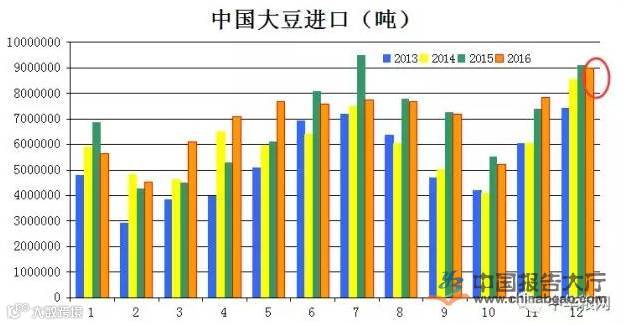 大豆是目前我国进口量最大的粮油作物,目前的进口关税为3%,进口量大约在8000万吨左右,而我国目前大豆的年产量只有1300万吨左右。国内产量和需求之间存在的差距过大,大豆作为原产于中国的作物自给率太低,豆农普遍认为种豆不赚钱,又少有补贴,于是就放弃了大豆种植,有超过80%的比例都要从国际市场进口。