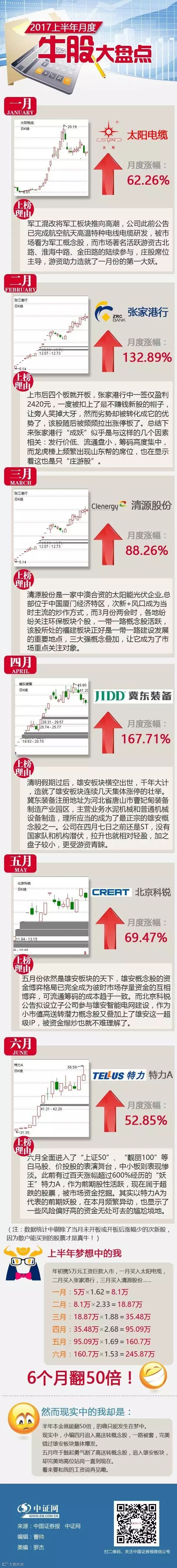 一转眼,2017年只剩下半年可交易的时间了,上半年的A股行情精彩不断,炒作风向也几度转变,这从月度牛股的更迭中便可一窥究竟。