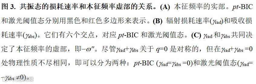 此外,pt-BIC的存在也揭示了PT对称系统中一些新的物理现象。在PT对称的系统中,大多数研究关注两个态合并在一起(对应的本征值和本征态合并),从而产生EP点。本工作将增益和损耗引入支持BIC的系统中,会发现一个新颖的现象:PT对称性会导致态的分裂。一个BIC会分裂成两个具有纯实能量的态:pt-BIC和激光阈值态。这些新奇的物理现象与备受关注的基于EP点的现象完全不同。因此该结果为研究PT对称和非厄米系统提供了新的方向。同时,这种可以通过远场激发的束缚态也为BIC在激光、超敏感探测等方面的应用提供新的可能。