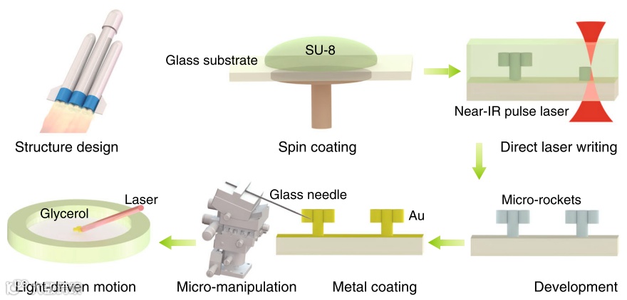 光驱动火箭微型机器人的高速运动和灵活控制