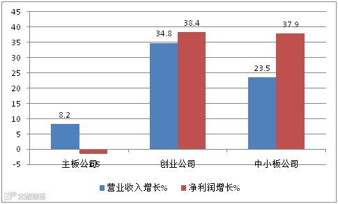 瞧瞧,小的反而好。中小板和创业板公司大多都是小型公司而且私营企业居多,总体净利润增长很快,特别是中小板净利润增幅明显高于营业收入的增幅,表明其盈利能力更强。而主板公司就差些了,营业收入增长慢,关键是净利润还下降啊。
