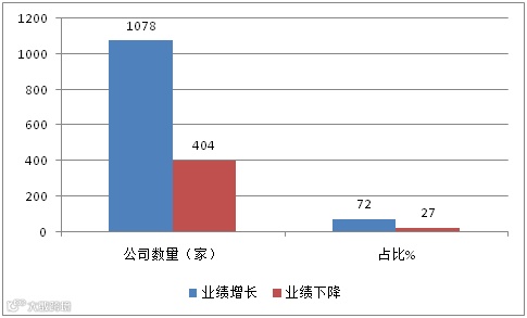 但从公司数量看,营业收入同比增长的有1169家,占全部1489家公司的78%;实现净利润同比增长的有1078家,占1489家公司的72%。挣了利润的还是多数的,只是有一部分公司出现增收不增利。