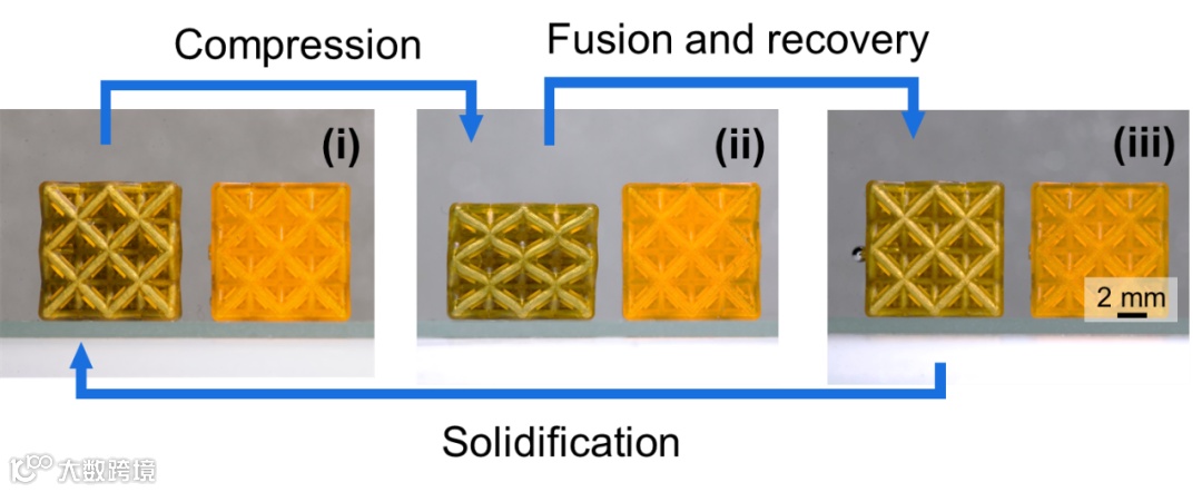 图3 液态金属-高分子点阵力学超材料良好的形状记忆效应