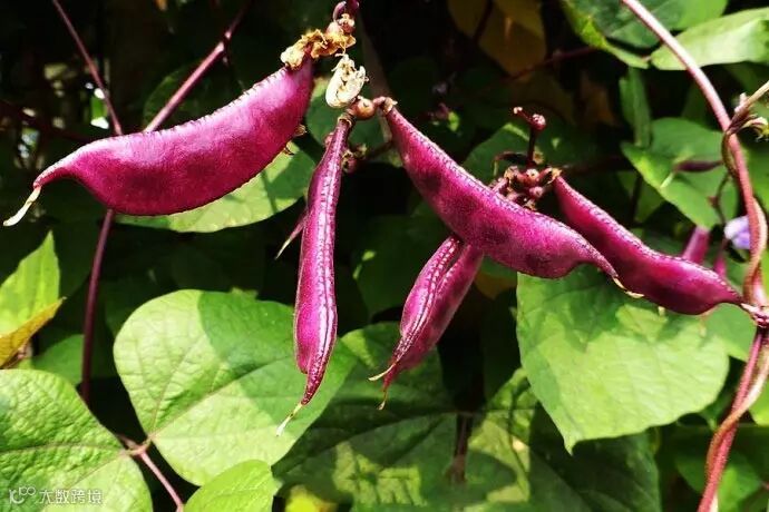 扁豆颜色丰富,有绿白、浅绿、粉红和紫红等色。上图为紫红色扁豆。