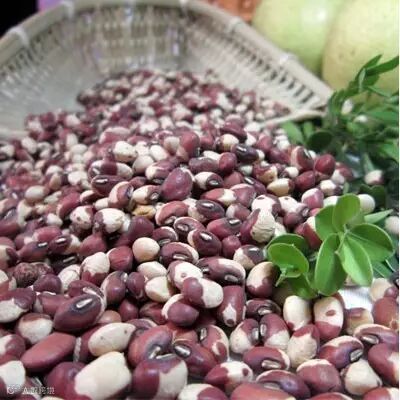 普通豇豆籽粒颜色和花纹比较丰富。根据花纹将它们分为眼型、小斑点型、大斑点型和纯色型。上图为大斑点型豇豆 。