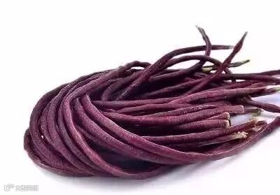 除了我们常见的绿荚、浅绿荚和绿白荚豇豆,还有花荚、紫荚和豇盘曲荚等不同种类。上图为紫荚豇豆。