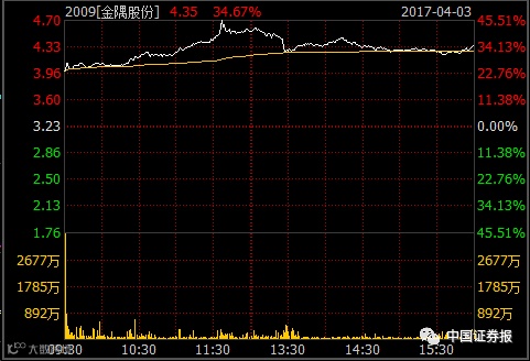 作为港股中最为纯正的雄安概念股,金隅股份4月3日跳空高开,此后继续走高,最高上探至4.70港元/股,涨幅超45%,此后涨幅略有收窄,尾盘收报于4.35港元/股,上涨34.67%。值得注意的是,3月份金隅股份先扬后抑,月跌幅超10%,达到11.02%。4月首个交易日,金隅股份便大涨逾30%,不仅一举收复失地,也刷新了近11个月的股价新高。