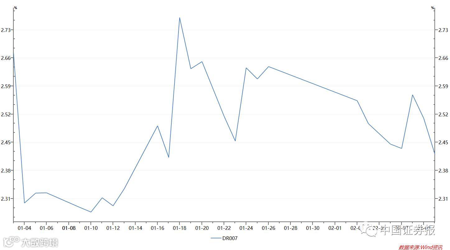 尽管受到公开市场操作利率“加息”影响,春节后短期资金利率仍有所下行。2月10日,银行间市场质押式回购(存款类机构)隔夜品种加权平均利率收报2.23%,较节前最后交易日(1月26日)下行34BP;指标7天回购利率加权值报2.42%,较节前下行22BP。