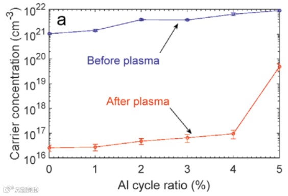 图1 氧等离子对于不同Al原子含量AZO的载流子浓度影响
