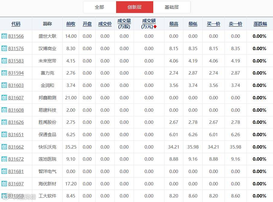 12月19日,新三板全天交投规模仅为13.18亿元。而这一交易量低于当日创业板交易量排名前三位的万福生科(18.5亿)、星源科技(15.1亿)、易事特(14.4亿)。952家创新层公司里,仅有433家公司当日有成交,519家创新层公司无成交,全天仅成交6302.27万股,金额为53191.34万元。同时分化剧烈,创新层中成交首位的永安期货一家成交金额就达到9089.94万元。