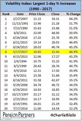 VIX的暴涨,创下有史以来第八高的单日涨幅。