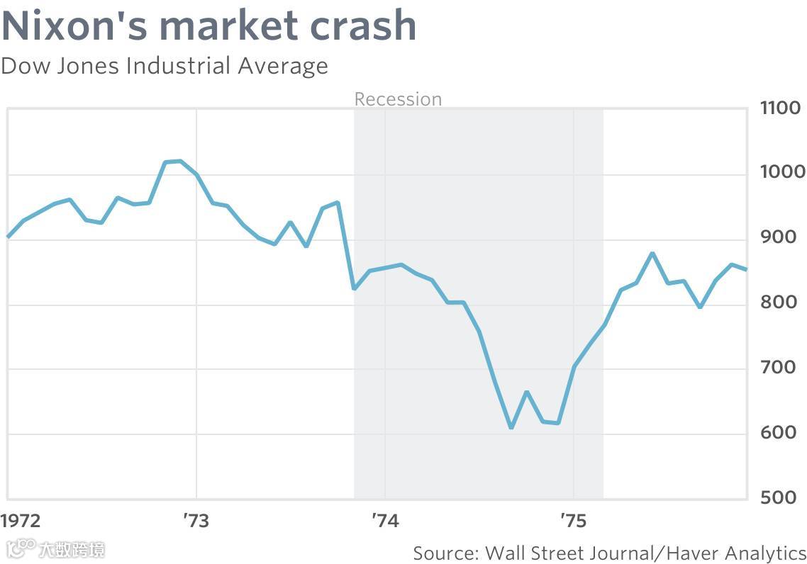 尽管多数分析师仍持有限的悲观看法,但从历史经验看,如果特朗普政治丑闻最终真的演变为新的“水门事件”,美股的暴跌可能才刚刚开始。历史数据显示,从1973年初到尼克松下台的1974年8月,道琼斯工业平均指数跌幅超过40%,标普500指数下跌了近50%。1974-1975年期间,美国陷入了上世纪三十年代以来最严重的经济衰退。