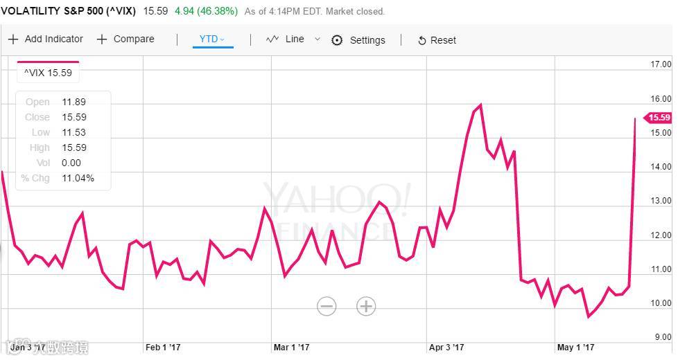 有“恐慌指数”之称的芝加哥期权交易所(CBOE)波动性指数(VIX)周三单日飙涨46%,创去年6月以来最大单日涨幅。暴涨彻底打破了市场的平静——此前恐慌指数已连续两周徘徊于二十多年来的历史低位。