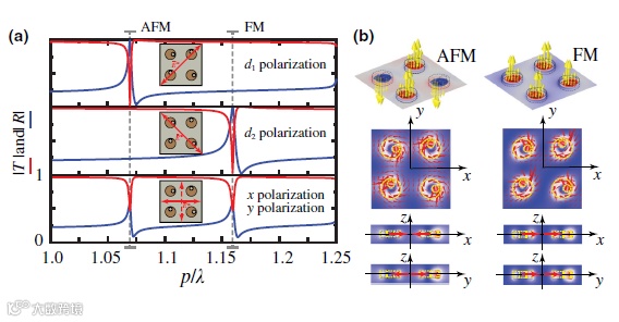 近日,来自澳大利亚国立大学的研究小组可以在由亚波长单元结构(也称为“超构原子”)的周期性阵列组成的超构材料中实现光频率下的人工磁性。光感应磁矩既可以排列成与铁磁(FM)顺序自然相关的非交错结构,也可以排列成与反铁磁(AFM)顺序相对应的交错结构。在这里,研究者证明了这种超构原子晶格的磁偶极子阶数可以出现在每个非对称介电(非磁性)结构支持的局域限制模式的低对称米氏共振超构表面中,揭示了这些全介电共振超构表面不仅具有强大的光学磁响应,而且在FM和AFM共振下都显示出传播电磁波的显著极化旋转。研究者通过直接测量在全介电超构表面中激发的不同模式的光谱特征,并绘制微波频率下电磁场的近场模式,来通过实验证实这些发现。这种超构表面可以用作实现增强的光-物质相互作用的有效平面光学平台,相关研究发表在杂志《Physical Review Applied》上。(刘乐)