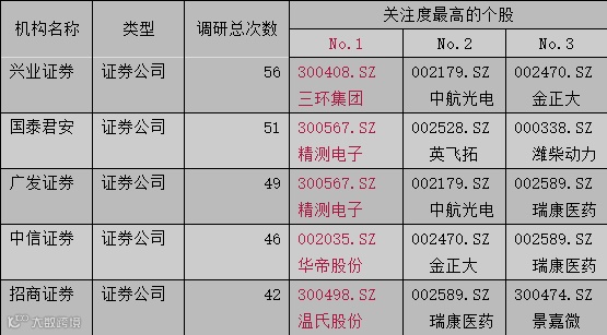*12月1日到26日调研次数最多的五家券商。数据来源:wind