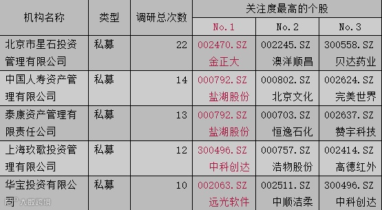 然后来看嗅觉灵敏的私募机构:他们调研也很密集啊。