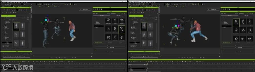如果我需要为了讲故事而包含不同的动画,我可以很容易地将下一个动画拖动到时间线上,并将两者混合在一起以实现平滑过渡。我还可以打断动画并旋转它以改变方向,从而完全控制场景的动态。