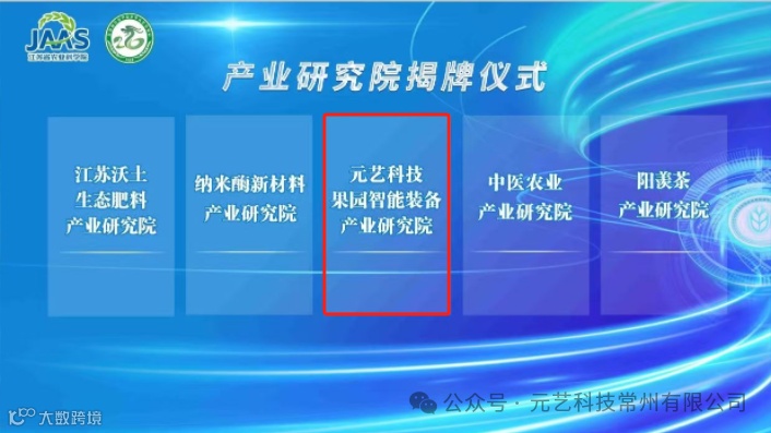 元艺科技作为农业设施装备企业参与其中,由江苏省农业科学院农业设施与装备研究所所长袁爱萍和常州市农业农村局李亦处长共同为“元艺科技果园智能装备产业研究院”揭牌。公司总经理史江全也到现场参加了会议。
