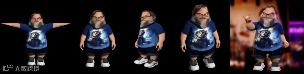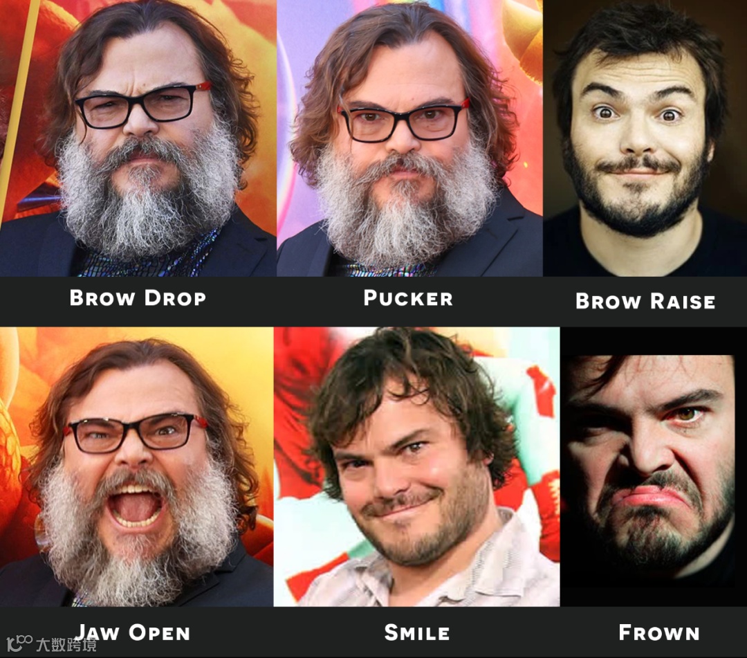 我们利用杰克·布莱克的在线参考图像来指导他各种面部表情的创作。我们的进球是一场精准的比赛。