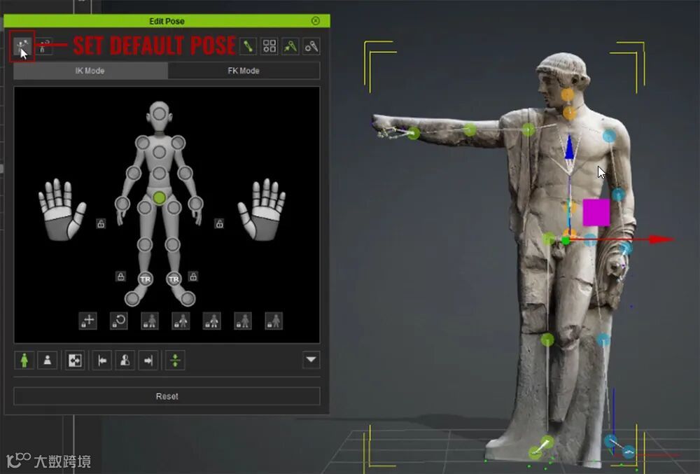 内容来自于“https://magazine.reallusion.com/”有时候你只需要把事情做完,而且要快。这就是我们今天要看的,Skinning Vs Rigging。Skinning比AccuRIG简单一些,速度快很多倍。虽然AccuRIG是一个为两足动物角色蒙皮的强大工具,但当它被推出盒子外时会有点棘手,但如果需要遮罩功能,它可以通过足够的努力来完成。将AccuRIG用于非两足动物、“某种角色”或基本上是一些身体部位定义但并非全部可用的网格块的最大问题之一是正确的轴点。根据网格的来源或创建方式,它可能从未被赋予合适的枢轴,或者更糟的是,枢轴偏离了身体的中心,因为手臂指向外侧,就像我们将在本文中使用的示例。这种姿势会自然地将枢轴放在整个网格的中心,而不仅仅是底部和腿之间。奇怪的枢轴和其他网格制作方式会使AccuRIG很难在网格上正确放置标记。创建这些标记也可能需要很长时间,即使它们不在最佳位置。如果网格具有适当的干净拓扑,这不是问题,但雕像的制作并没有考虑到动画。我们能做的最好的事情就是确定我们认为可以装备或蒙皮哪些肢体,以及我们如何在Character Creator 4中完成这项任务。在这种情况下,它不是使用AccuRIG进行装配,而是将雕像蒙皮到网格上,然后使用“隐藏网格”工具隐藏身体。AccuRIG不是执行此任务的最佳选择正如我之前所说,装配非双足网格很棘手,需要更长的时间,有时可能需要做很多工作,但结果并不比简单的布料蒙皮好。这不是AccuRIG的错,因为它根本不是为这项任务而制造的,但这并不意味着我们不会尝试。在最后的教程中,我从AccuRIG过程失败的加速片段以及我的叙述开始。左图:AccuRIG在初始标记放置方面遇到困难。右图:移动到位后的标记。AccuRIG花了很长时间才在雕像网格上放置初始标记,因为它几乎没有可辨别的肢体,只有两个肢体没有连接到网格的其余部分。这是我们制作动画所需的手臂和头部。正如您将在嵌入式教程中看到的,AccuRIG不喜欢我编辑的标记位置,并将骨架扩大到滑稽的比例。左:与之前的手动标记放置相比,骨架的宽度不成比例。右:尝试使用遮罩仅激活手臂和头部骨骼。即使启用了遮罩,我也无法从手臂或头部获得适当的运动,因为它们没有与骨骼正确对齐,基本上忽略了大多数手动标记的放置。最重要的是,骷髅跳来跳去,拒绝保持在网格的中心。这使得手臂和头部的动画制作非常困难,因为枢轴离得很远,并且由于装配不良导致网格变形不可用。蒙皮时,骨架从网格中心移动到左侧,使手臂和头部无用,因为网格因放置不当而变形。正如我之前所说,AccuRIG的任务是几乎必须装配一个网砖,这使得创建适当的装配包络变得非常困难。在剥皮过程中跳出的骷髅是棺材上的钉子,因为我知道我可以尝试剥皮,不需要用索具再试一次。Skinning是我们的朋友在这种情况下,蒙皮要容易得多,这几乎很滑稽,而且这并不是蒙皮比装配更好的唯一例子。这主要取决于手臂和腿是否与身体或网格的其余部分有足够的距离来正确蒙皮。对于布料蒙皮,公差要宽容得多,因为我们只想为网格的某些部分设置动画。加载雕像网格作为道具后,我们可以加载角色。在这种情况下,我选择了基础中性男性。同样,本教程将更详细地介绍所有这些,但接下来我们要做的就是将角色的姿势尽可能靠近雕像的姿势。然后我们移动角色,使其与雕像更好地对齐。左:加载布料蒙皮的头像。中间:将阿凡达摆出与雕像相似的姿势。右图:移动头像以更好地与雕像对齐。在我们摆好姿势并将角色放置在离雕像网格更近的地方后,我们可以:选择雕像网格将雕像网格附加到角色(这将激活“转移蒙皮权重”选项)将雕像网剥皮为“其他”布料(我没有尝试任何其他选择)蒙皮后使用“隐藏网格”工具隐藏角色网格的所有身体部位必要时删除CC网格中不需要的功能关闭舌头的可见性左:使用CC4中的隐藏网格工具隐藏角色。右:只有蒙皮网格仍然可见,但选择后角色将被选中。非常重要的是,我们在姿势编辑器中设置默认姿势,否则绑定姿势将恢复为A姿势,当保存为角色而不是我们需要在iClone中使用的本地雕像姿势时,网格将严重扭曲。在发送到iClone或保存之前,请务必设置默认姿势,否则默认姿势将变为A姿势,这将严重扭曲网格。保存默认姿势后,我们现在可以将角色传输到iClone,以获得手臂和头部的非常简单的关键帧动画。事实上,这只是几个关键帧。头部和手臂各一个,可以在同一帧上,也可以在不同帧上变化。您可以沿时间线向下移动到所需的帧以旋转头部或移动手臂来创建移动部件的动画。只使用两个关键帧来抬起手臂和旋转头部的布料蒙皮雕像到隐形CC3角色动画。总结有时,正如我在开头段落中所说,你只需要完成一些事情,而不需要花几天时间。有时动画需要那么多工作,但是,如果你能想出一种方法来蒙皮一个静态网格块,比如一个可能只有部分定义的雕像,那么你就可以通过动画化通常是静态的对象或一个更复杂的过程来移动几条腿,从而为你的场景添加一些漂亮的细节或细微差别。如果你需要嘴唇同步、表情或类似的东西,那么你必须求助于一个更复杂的过程,从长远来看,这可能会也可能不会奏效,具体取决于雕像的网格。蒙皮也是在正确的情况下创建快速原型或概念证明的一种方法。发挥创造力,不知道你接下来会用Character Creator和iClone制作什么网格的动画。 —— END 