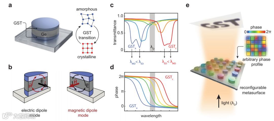 超表面是光学研究领域中最受到关注的一个方向之一,材料的光散射特性可以通过人为设计的亚波长结构(“超单元”)随意调控。低损耗纳米介电超表面已经成为超薄光学和前沿光子应用的一个突破性平台,包括光束整形、聚焦和全息技术。然而,其组成材料的静态特性在一定程度上限制了它们其它的功能应用。