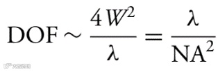 透镜是一种光学元件,它将入射的准直光聚焦到一个焦点上。垂直于镜头测得的距离范围内,光斑保持高度聚焦的距离通常被称为聚焦深度(DOF)。DOF和焦点大小满足如下计算公式: