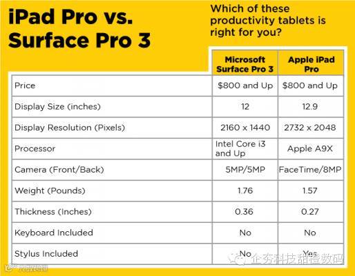 一种观点认为,苹果实际上是把竞争对手已经玩剩下的概念重新拿出来,再加以包装推出了iPad Pro。当然,从生态布局来看,iOS产品的形态更为完善了,但对于用户来说,iPad Pro能够带来怎样的使用形态、与Surface Pro 3相比哪一款才是最佳的移动生产力选择呢?
