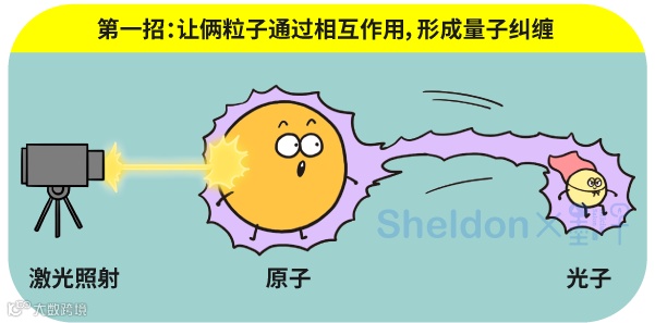 第一招:让俩粒子发生相互作用。这个道理很简单。假如有一个原子,有一个光子。用光照一下原子,它们就有一定概率产生量子纠缠。研究组的第一步就是这么做的。