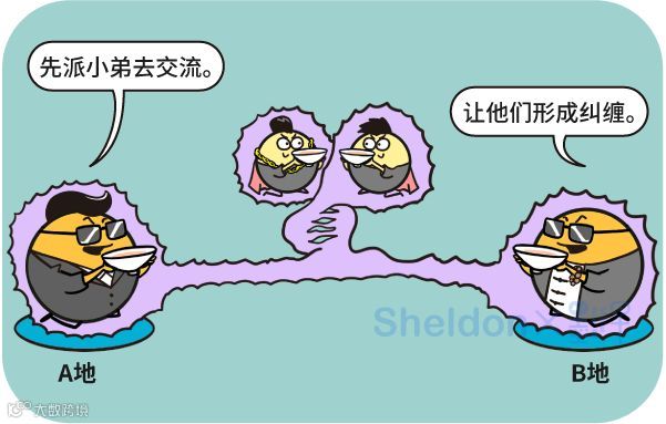 但是,以上说的办法不能直接用。因为俩原子不在一个地,不可能直接发生相互作用,所以第一招不能直接用。俩原子不在一个地,不可能同时对他们测量,所以第二招也不能直接用。