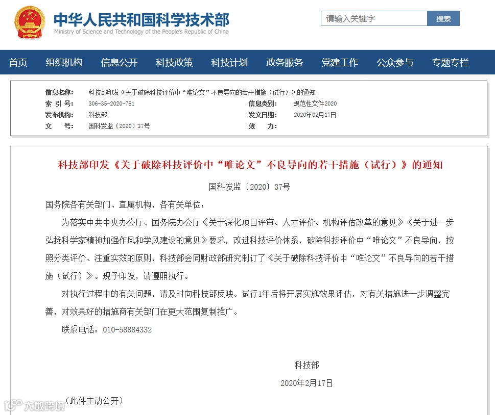 2月23日,科技部公布《关于破除科技评价中“唯论文”不良导向的若干措施(试行)》(以下简称《措施》)。
