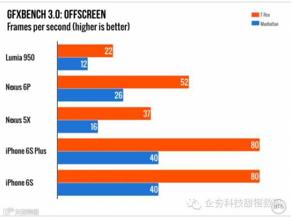 Windows Phone向来以流畅著称,即便是低端硬件也能有绝佳的表现,而Windows 10 Mobile看起来似乎在保留实力。在Gfxbench的3D性能测试中,由于驱动不同,它的表现并没有比硬件弱于自己的Nexus 5X高出多少。