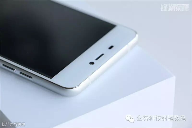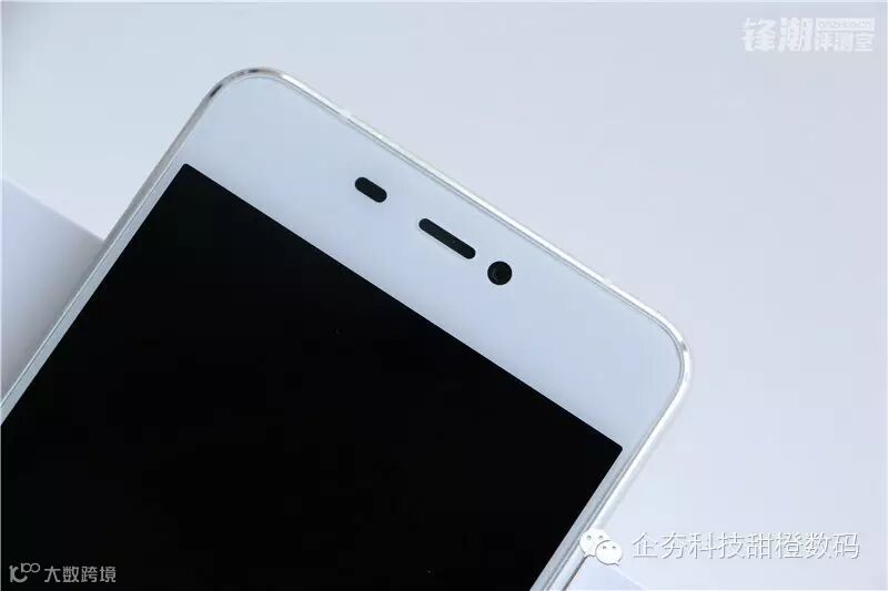 三个水平并排的面板开孔,左往右分别是感光/距离元件、嵌入式听筒滤网、800万前置摄像头。