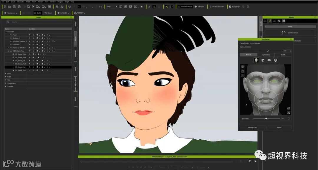 对我来说,在 Character Creator (CC) 中创建角色的主要优点是能够通过应用 cel-shaded 效果直接可视化最终结果,使其看起来像是为 2D 动画制作的。正如我们将在下面看到的,这使建模更容易,并允许我们以简单直观的方式进行更正。另一个很大的优势是 CC 是创建这种角色的理想程序,因为它能够自定义表情,除了获得专业和功能性的模型。我将在本文的后半部分阐述这些惊人的功能,但首先让我们谈谈采用卡通外观的优点。