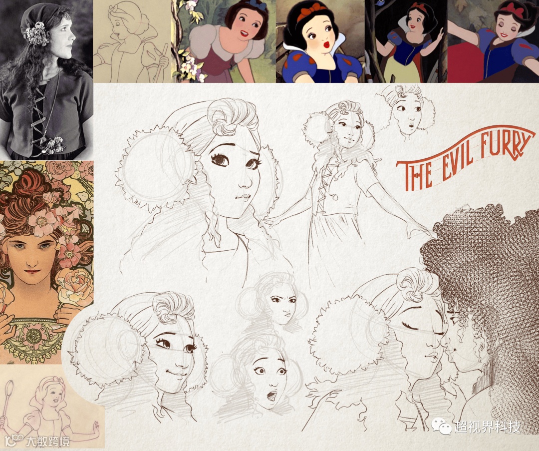 在这种情况下,一个年轻女孩出现在故事的特定部分,假装是一个被放逐的公主。她是一个无忧无虑的甜美人,穿着简陋的衣服,最终爱上了故事的主人公。考虑到这一点和迪斯尼电影《白雪公主》的卡通风格,我寻找完美的参考并探索不同的设计,直到找到你可以看到的这个。就我而言,寻找迪斯尼电影的概念艺术以了解正在考虑的想法并真正了解电影的绘画风格非常有用。