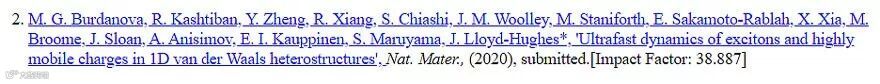 考虑到现有的二维材料种类繁多,以及范德华异质结构本身又具有多样的排列组合方式,未来将会有更多一维范德华异质结构被报道出来,它们的性质也会得到更充分的挖掘。从Maruyama-Chiashi课题组网站上可以看到,他们已经对一维范德华异质结构的性质进行了更深入的研究,期待后续的精彩故事。
