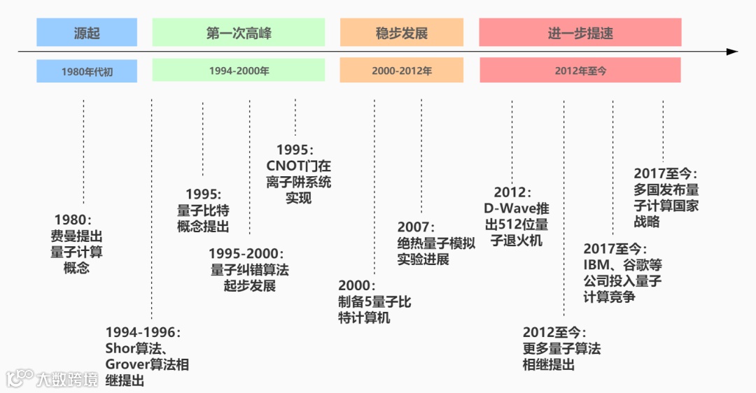 量子计算发展简史示意图