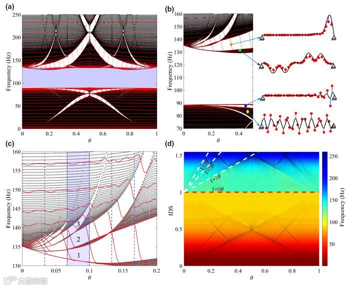 近日,来自佐治亚理工学院的Yiwei Xia研究小组研究了准周期性共振超构材料的动态行为和拓扑性质。他们表明,谐振器的准周期排列除了由谐振器的自然频率定义的局域谐振带间隙外,还引入了频带间隙。这一概念在带有一系列机械共振器的光束上进行了说明。作为共振器准周期性排列的函数,对光谱进行数值评估揭示了一种让人联想到霍夫施塔特蝴蝶的结构,并允许研究关键的拓扑特性。结果表明,在拓扑上具有非同寻常的其他带隙,以及有限结构中局域的边界态模式。通过测量光束的频率响应和评估所选操作偏转形状的空间分布,实验证明这些间隙和相关边界态的发生。研究结果揭示了确定性准周期结构设计在多个频带上诱导波局域化和衰减的潜力,这可能在振动隔离和能量收集等方面找到应用。相关研究发表在杂志《Physical Review Applied》上。(短文作者:刘乐)