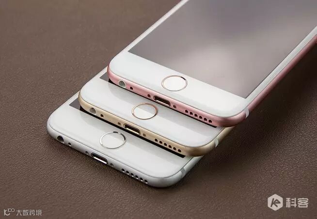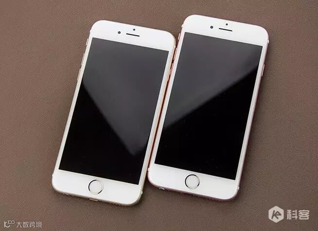 从正面看,玫瑰金的iPhone和土豪金的iPhone差别不大,只有边缘的一圈色彩能显示两者的不同。