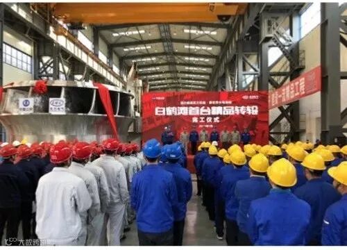 由东方电气集团东方电机有限公司研发制造的白鹤滩水电站首台百万千瓦水轮发电机组的转轮,于2019年1月12日上午在电站工地的转轮厂房正式完工,并较原计划提前交付。