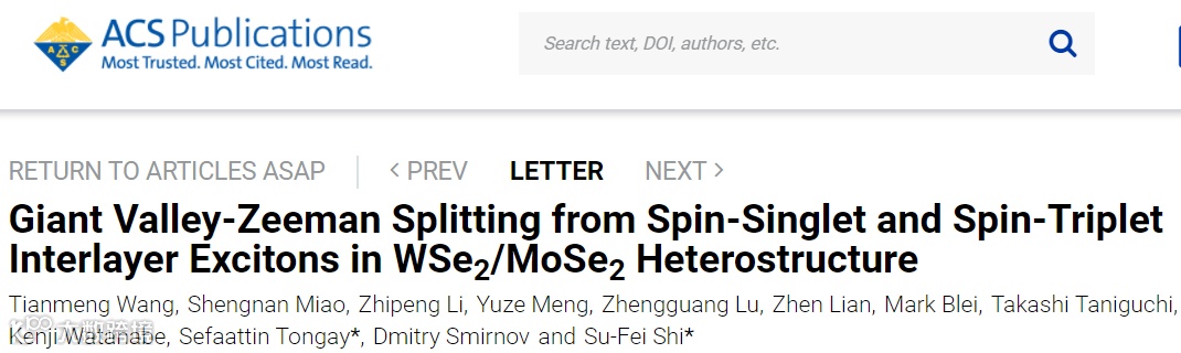 本研究揭示了WSe2/ MoSe2异质结中层间激子不仅具有极大的能谷塞曼分裂,同时还有出色的谷极化特性,为自旋电子学和谷电子学的应用提供基础。论文的共同一作是博士生王天盟,博士生缪胜男,李志鹏博士和博士生孟余泽。共同通讯作者是史夙飞教授和Sefaattin Tongay教授。其他合作者还包括FSU的博士生陆正光,日本的Taniguchi和Watanabe 博士和美国国家高磁实验室的Dmitry Smirnov博士。