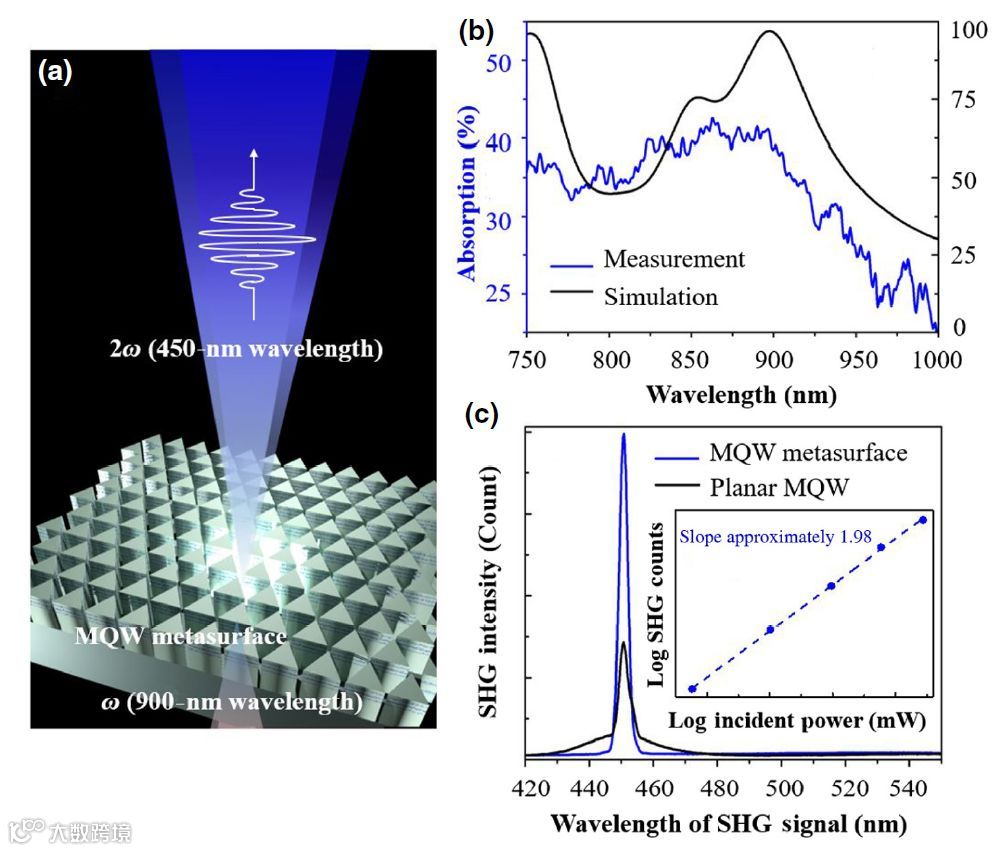 全介电多量子阱超构表面二次谐波可见光的超高效率