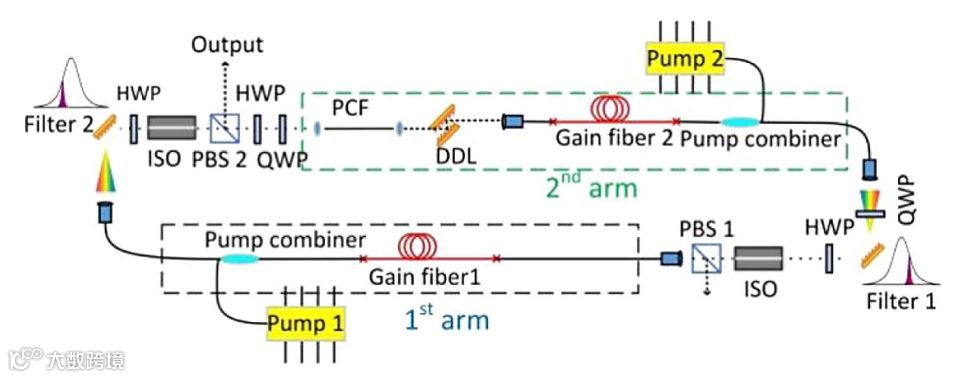 从光纤激光器中获得低周脉冲的一种常用方法是在腔外进行非线性脉冲压缩。另一种方法是相干地结合来自高度非线性光子晶体光纤(PCF)的两个超连续谱。然而,这些设备非常复杂,并且存在稳定性问题。另一方面,由锁模光纤激光器直接产生的宽谱超短脉冲具有许多优点。直接由激光产生的脉冲更稳定,噪声更小,因为每次往返时脉冲上的时间相位都经过了整形。虽然目前锁模光纤激光器的性能得到了很大的改善,但有限的增益带宽限制了其产生接近几个周期甚至更短的超短脉冲的能力。