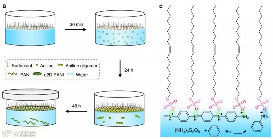 图1.自组装単分子层辅助气液界面聚合构筑二维聚苯胺策略