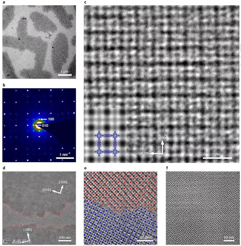 图5. 二维聚酰亚胺(2DPI)晶体结构与晶界表征