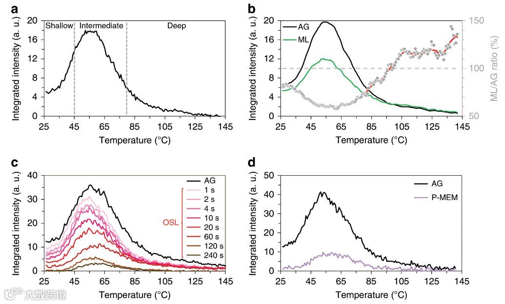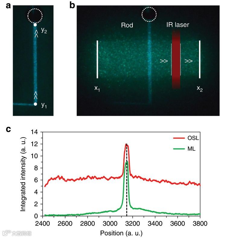 为此,Robin R. Petit等人提出了压力记忆(pressure memory,P-MEM)属性,在特定的磷光体中存在一个相对较大的陷阱深度范围,不同的势阱以特定的方式对特定的激励(压力、热和光)作出反应。在机械激励注入后,一些载流子重新结合,立即发出光,而其他载流子重新分布在相对较浅的势阱上(导致短暂的余辉)或几乎永久地储存在深势阱中。深陷阱中储存的电荷可以在一段时间后通过光受激发光(optically stimulated luminescence,OSL)机制以红外辐射释放出来,从而可以读出激励信息。