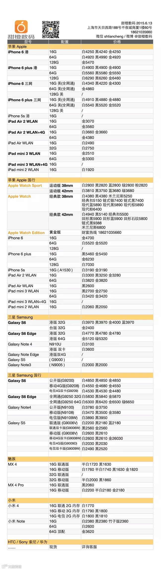 三星 Galaxy S6 Edge 港版再次大幅度降价,幅度达 100 左右,绿松石款补货已到,国行版绿松石色也已到货;Galaxy S6 则有些微的反弹;iPhone 6 及 Plus 方面则是相对稳定,唯有美版供货略有缺失;iPad Air 1/2 和 iPad mini 2/3 稳定。