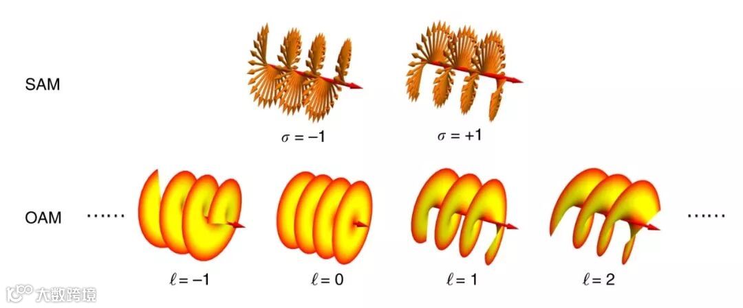 图二 光子自旋轨道角动量(SAM)与轨道角动量(OAM)的本征态图解。