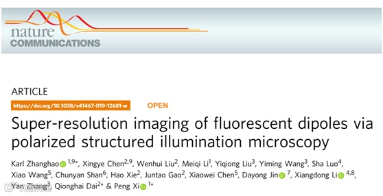 为了研究蛋白在亚细胞结构中的定位和取向,北京大学席鹏课题组、清华大学戴琼海课题组及其他同事近期联合开发了偏振光结构光显微技术(pSIM)。这一工作发表在Nature Communications:“Super-resolution imaging of fluorescent dipoles viapolarized structured illumination microscopy”【2】。