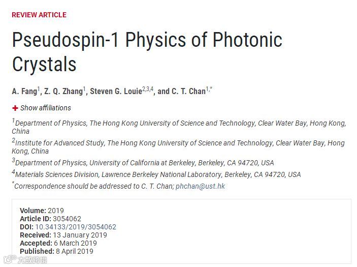 近期,香港科技大学陈子亭教授课题组结合自身的研究,综合评述了近年来人们在利用介电光子晶体探索研究赝自旋为1的系统的物理性能方面的进展,以“Pseudospin-1 Physics of Photonic Crystals”为题发表在Research上。